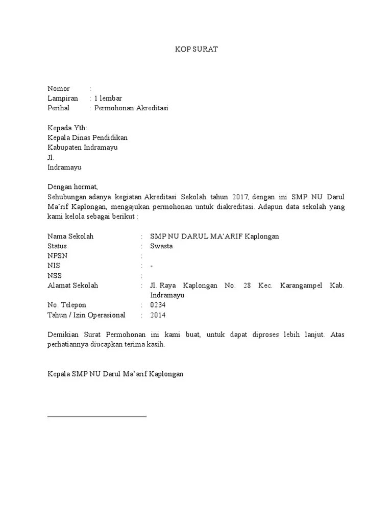 Contoh surat permohonan akreditasi sekolah contoh format surat permohonan pengajuan akreditasi paud dan pnf dan cara upload surat permohonan .